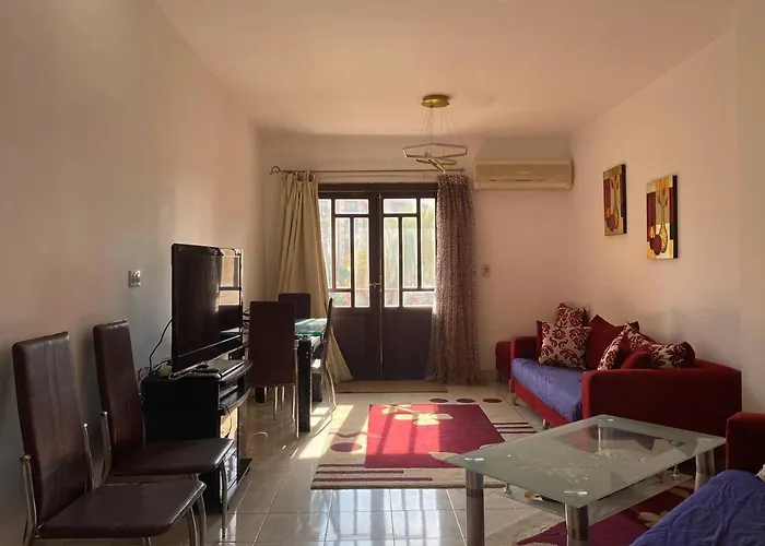 The spacious 1-bedroom Apartment In New Cairo - Rehab Compound, located in the New Cairo City district of Cairo, 4.9 km from Meeting Point Mall, features views of the garden.
